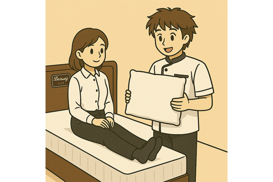 寝る姿勢を整える。37 オーダーメイド枕のフィット体験
